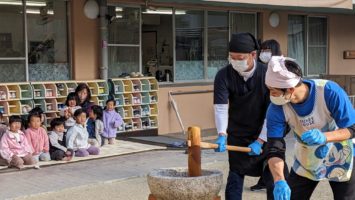 「きょうは、センターのおもちつき ぺったんこ ぺったんこ ぺったんぺったん ぺったんこ」と餅つきの手遊びから始まりました!餅つきのつき手として、お父さん3人がお手伝いに来ていただけたので、子ども達も大喜び♡大きな声で声援を送りました。ぞう...