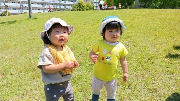 新しいお友だちも、保育者や保育園に慣れてきて、いい天気の日はたくさんお散歩にいけるようになりました。ちいさいクラスはワゴンで行ったり、お兄ちゃんたちと手をつないだりして行ってます。お花や虫を見つけたり、草の上・坂道などを歩いたり走ったり、お...